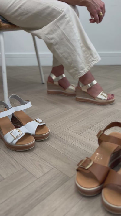 Crafted with care in Spain, these high wedges feature double adjustable straps that ensure a secure, flattering fit while maintaining an elegant minimalist look. The soft leather lining and lightweight sole make them a pleasure to wear — perfect for holidays, city strolls, or evening gatherings. Their neutral white hue brightens any outfit, adding an instantly polished touch to linen dresses, cropped jeans, or flowy skirts.